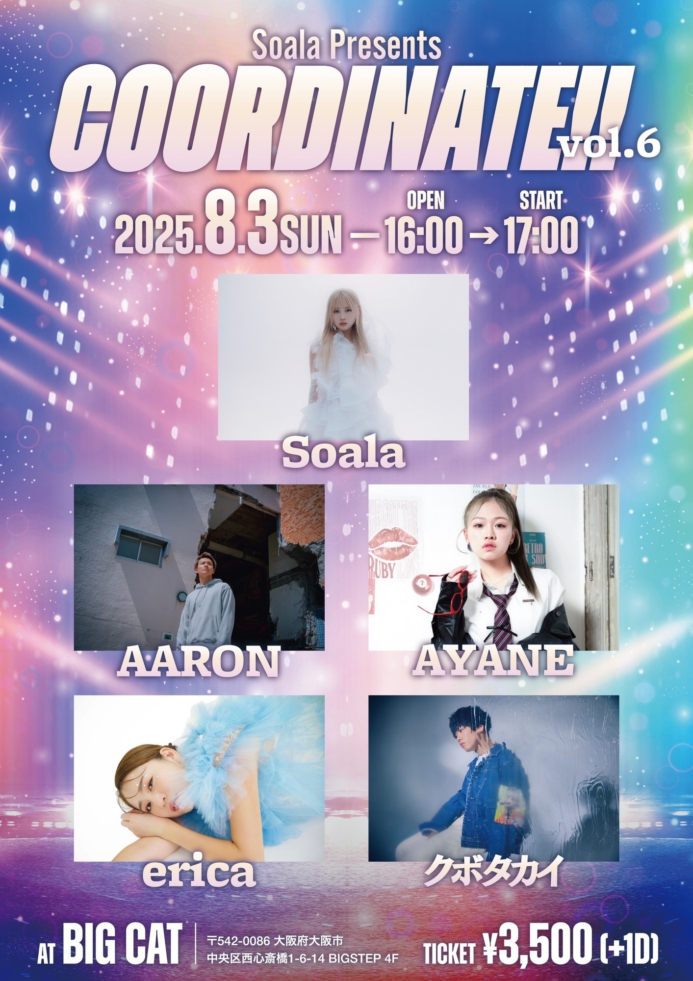 【LIVE情報】Soala Presents COORDINATE!! vol.6に出演!